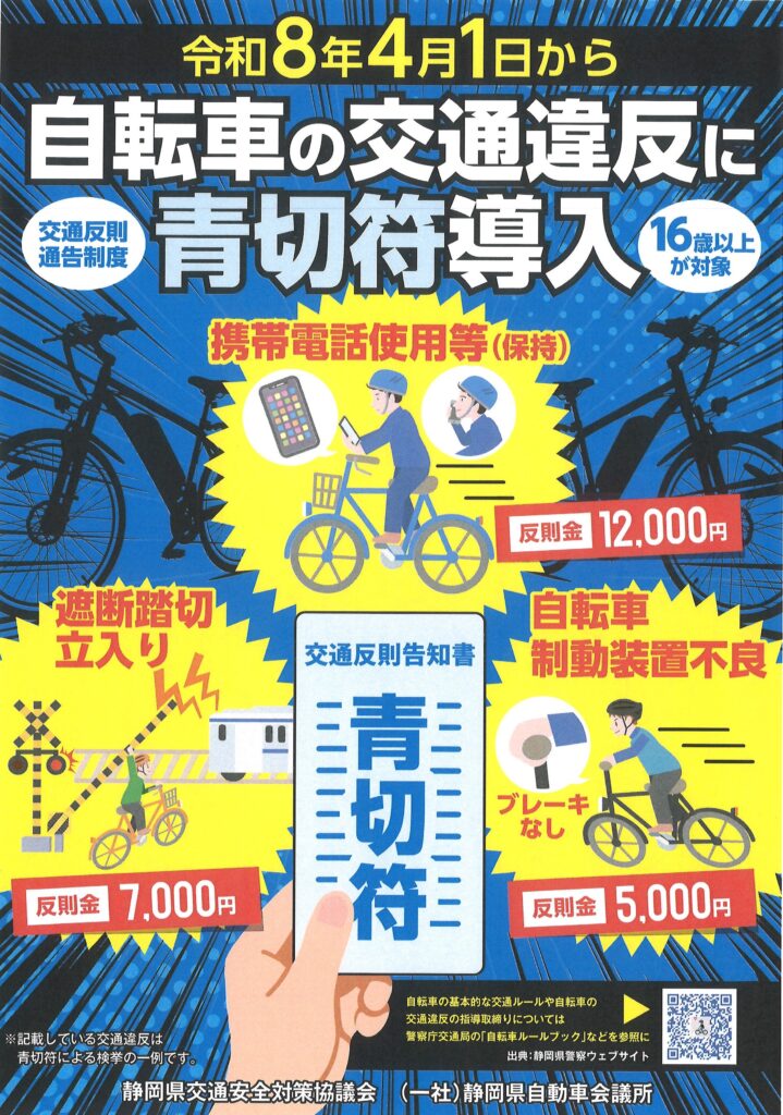 本年4月より、自転車の交通違反に交通反則通知制度(青切符)が導入導入されます。