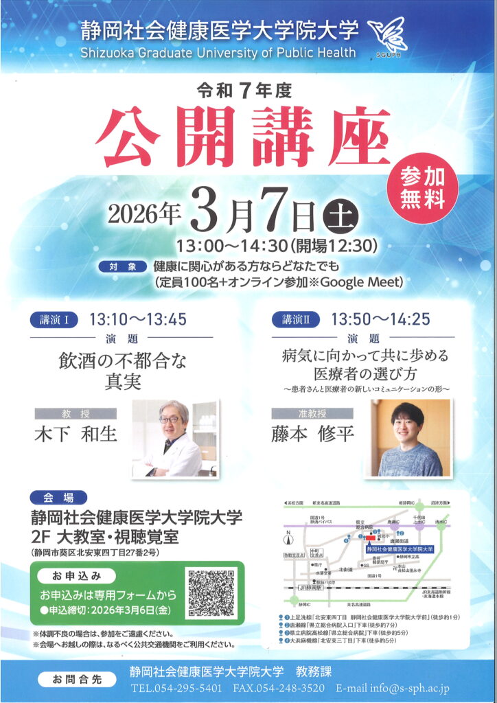 静岡社会健康医学大学院大学 公開講座のお知らせ